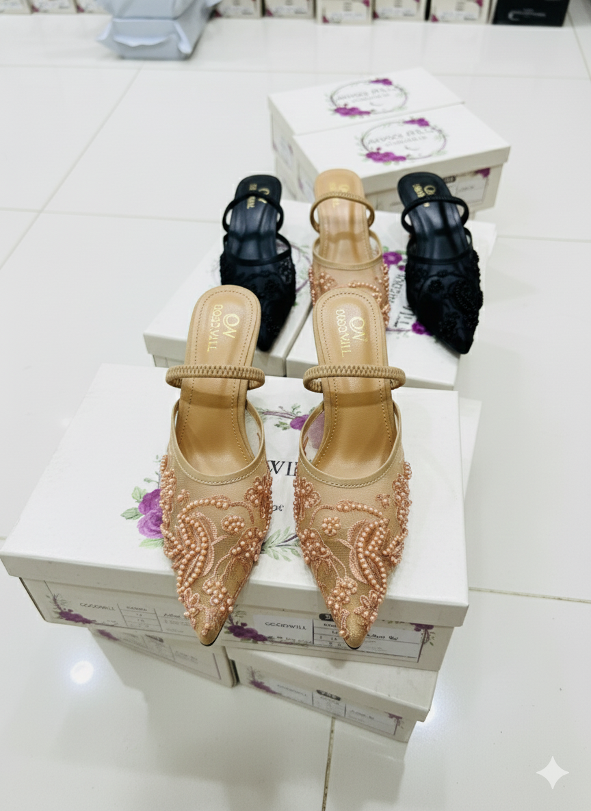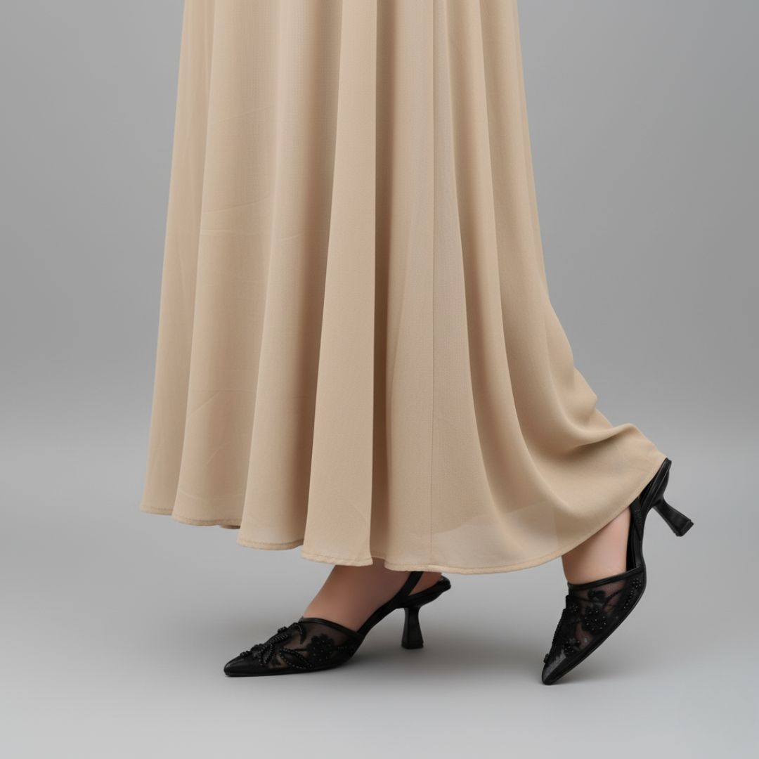 Featuring a graceful kitten heel, this pair provides just the right amount of lift for all-day comfort without compromising elegance. Perfect for formal gatherings, office wear, festive occasions, or intimate celebrations, these heels balance sophistication with wearability. Pair them with sarees, dresses, or tailored ensembles for a polished, graceful finish.