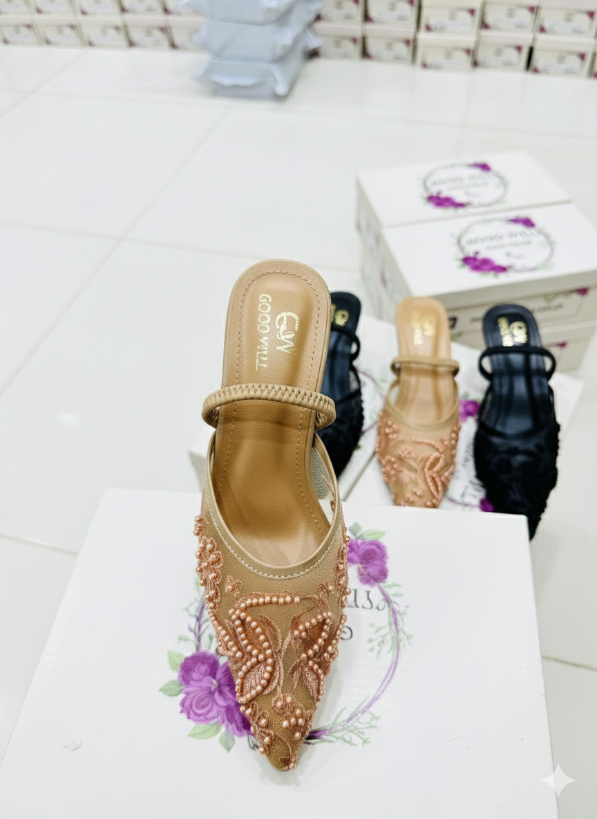 Step into understated luxury with these Elegant Fawn Hand-Embroidered Kitten Heels, designed for women who appreciate refined craftsmanship and timeless style. The soft fawn hue offers effortless versatility, while delicate hand embroidery adds an artisanal touch that sets these heels apart.